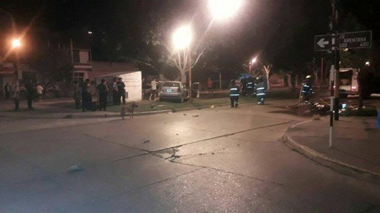 Por el fuerte impacto el auto se subió arriba de la plazoleta "Ciudad de Santa Rosa" y terminó chocando contra un árbol, pero la parte más grave se la llevaron los pasajeros de la moto. Ambos volaron varios metros y uno de ellos, un pibe de 25 años que iba manejando, murió de forma instantánea por los fuertes golpes.