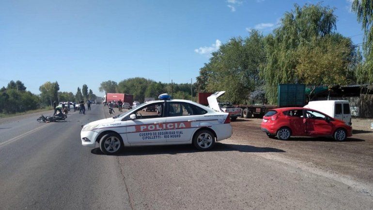 Según informaron desde el destacamento de Seguridad Vial, alrededor de las 10 tomaron conocimiento de un siniestro de tránsito ocurrido en el kilómetro 1213 de Ruta nacional 22 en Cipolletti, frente al barrio El Manzanar. Cuando llegó la patrulla se encontraron con un auto rojo que advertía un fuerte golpe y una motocicleta en medio de la ruta. A unos metros estaba el conductor del rodado menor, sobre el asfalto.