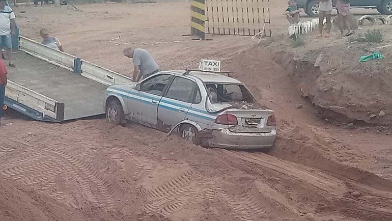 Un taxista quedó atrapado en un río de barro
