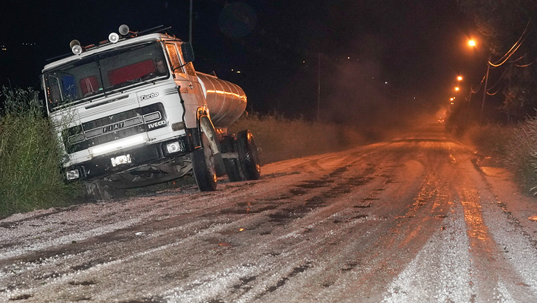 Además, a varios metros de donde cayó el rayo, se registró un despiste sobre el mismo Callejón de Torres de un camión regador que quedó casi sobre la banquina de la calle de ripio. Varios automovilistas detuvieron su marcha provocando un demoras en el tránsito sobre la calzada de la Ruta 40. Un Volkswagen Gol quedó colgando sobre la banquina cuando se detuvo por la gran cantidad de granizo precipitado.