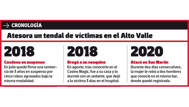 Una conocida viuda negra cipoleña volvió al ataque. Ahora, en dos noches seguidas, dejó dos víctimas en San Martín de los Andes, la detuvieron, pero ya está libre. Es que, entre robo y robo, la acusaron por un hecho de 2018 en Neuquén, donde un juez dictaminó que no había riesgo de fuga, pese a estar rebelde desde ese momento.