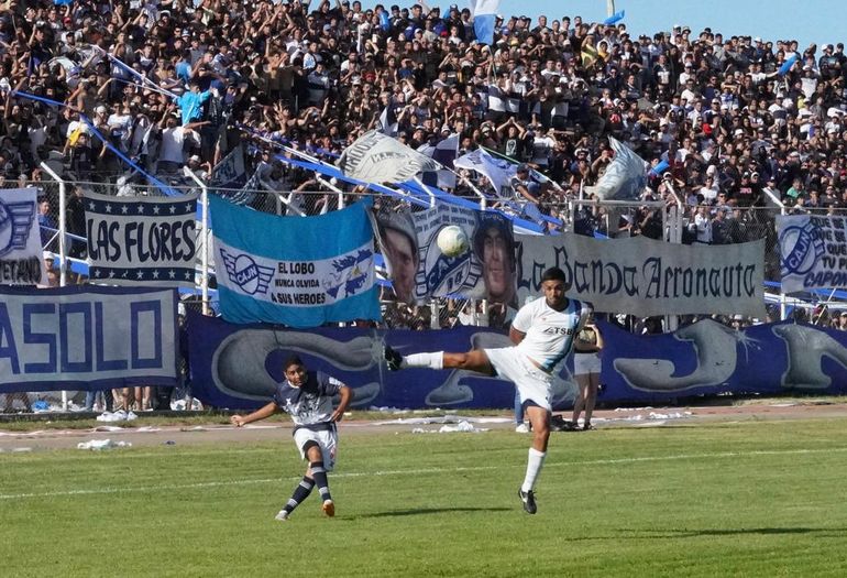 El Lobo se quedó y los rionegrinos fueron por la igualdad, que llegó a los 33 minutos, tras un centro por izquierda, que superó en altura al goleador Diego Martínez, pero que encontró llegando por atrás del delantero al capitán Fernando Fernández, que de cabeza venció al arquero Kevin Flores.
