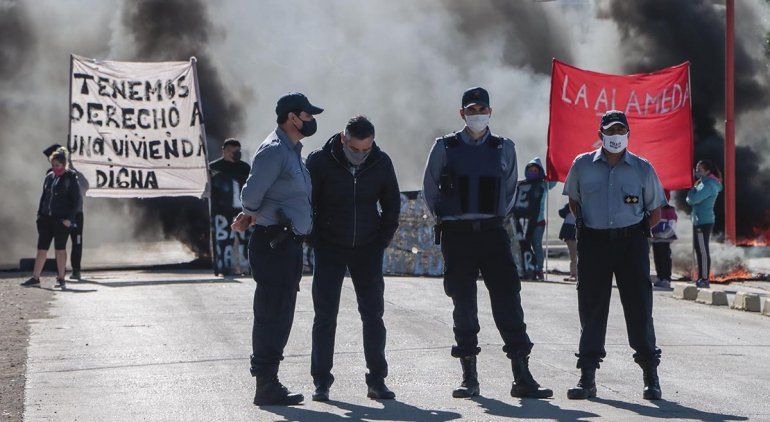 Vecinos del asentamiento La Alameda realizan un bloqueo total en las puertas de la secretaría de Servicios Públicos en la zona del Parque Industrial de Cipolletti. Los manifestantes reclaman acceso a la tierra y la vivienda. Afirman que no se irán hasta no ser atendidos por el intendente y se presente el fiscal.