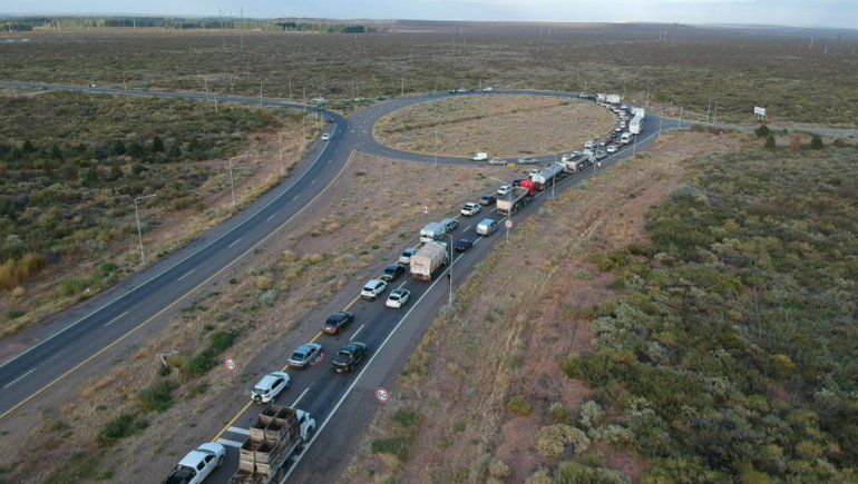 Tal como puede advertirse en las imágenes del dron de LM Neuquén tomadas este jueves a primera hora, la fila de vehículos es extensísima.