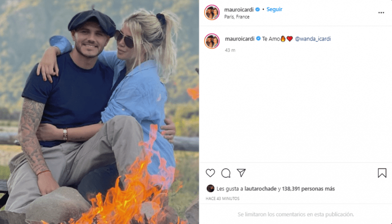 Pero este sábado por la mañana, Mauro subió una foto con Wanda, escribió "Te amo", puso un fueguito más un corazón y la mencionó, pese a que ella aún no lo volvió a seguir. El detalle de este posteo, es que Icardi limitó los comentarios, por lo que nadie pudo dejarle su mensaje en la foto, sólo un me gusta.
